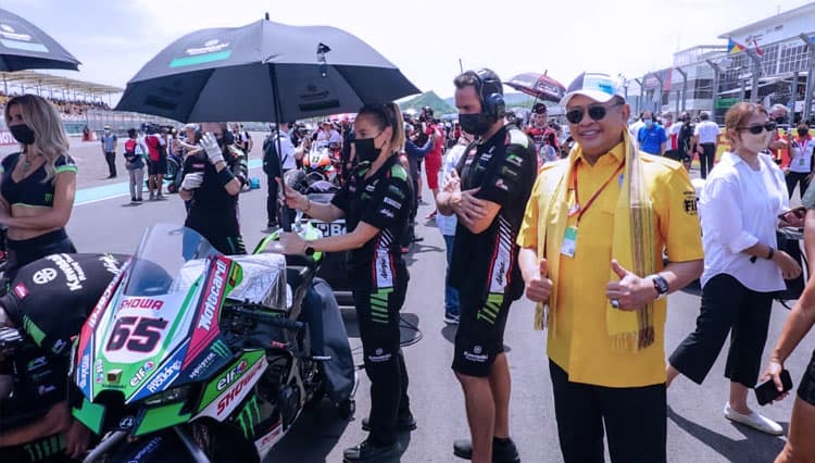 Ketua MPR RI sekaligus Ketua Umum Ikatan Motor Indonesia (IMI) Bambang Soesatyo memuji pelaksanaan WSBK Mandalika 2022. di Sirkuit Mandalika, Lombok, Nusa Tenggara Barat ...